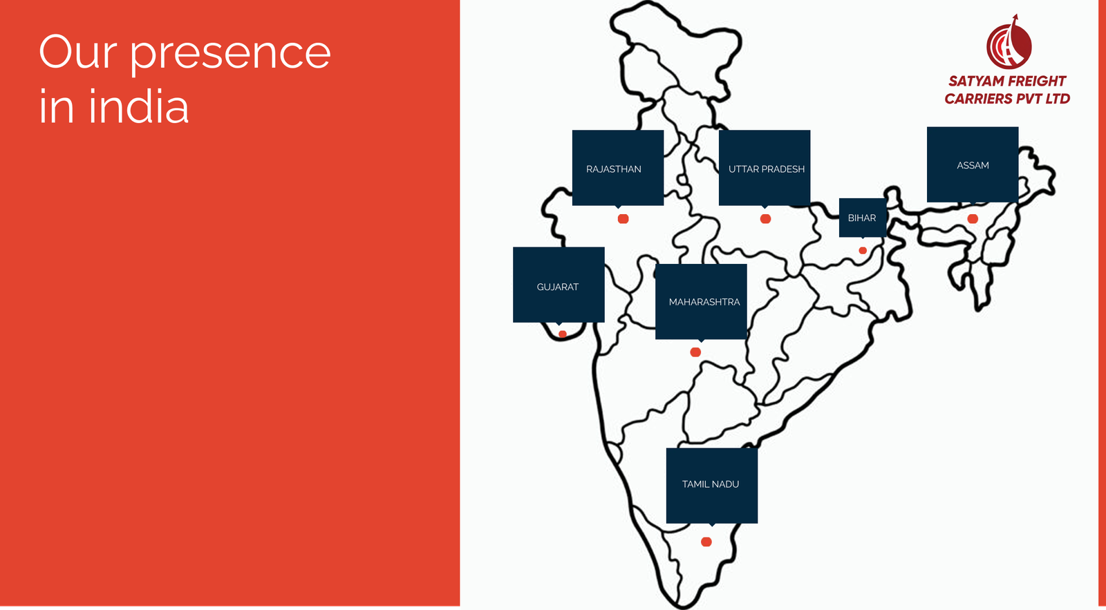 We offer Full Truck Load (FTL) and Part Load services, Pan-India freight movement, customized logistics solutions, door-to-door delivery, warehousing and dedicated customer support.